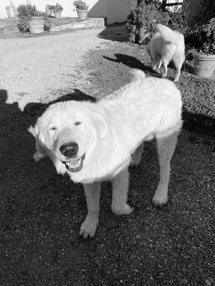 We practice natural ground cover, mow mechanically twice a year, and enrich the soil only with organic compost and natural manure. The estate is alive with animals that embody the rhythm of rural life — sheep, cows, horses, geese, and our noble Maremmano-Abruzzese sheepdogs, guardians of the flocks and faithful companions of our fields.